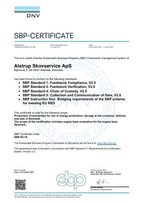 Alstrup Skovservices SBP-certifikat kode er: SBP-05-18.